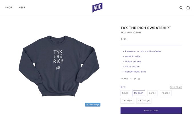 Matt S Idea Shop On Twitter Aoc Is Selling 65 Dollar Sweatshirts That Say Tax The Rich That Only Rich Ppl Can Afford Should Just Say Tax Me Https T Co Uhincklkwp Twitter
